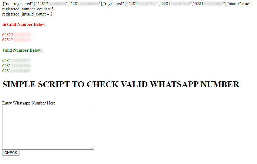 Você precisa saber se um número WA específico é válido ou não? Use este script. Você pode verificar vários números ao mesmo tempo.