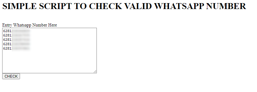 ¿Necesita saber si un número de WA específico es válido o no? Utilice este script. Puede comprobar varios números al mismo tiempo.